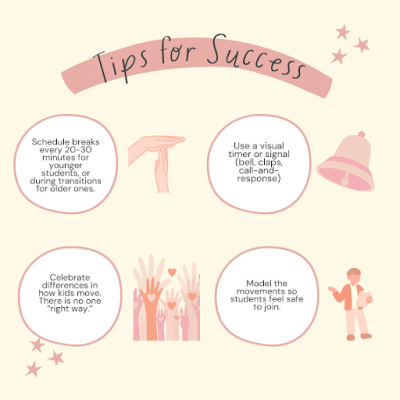 Micro-breaks may only take a minute, but they build a classroom culture where health, belonging, and joy matter as much as academics. When every student has a chance to move in ways that feel good, we empower their brains and bodies to do their best learning.